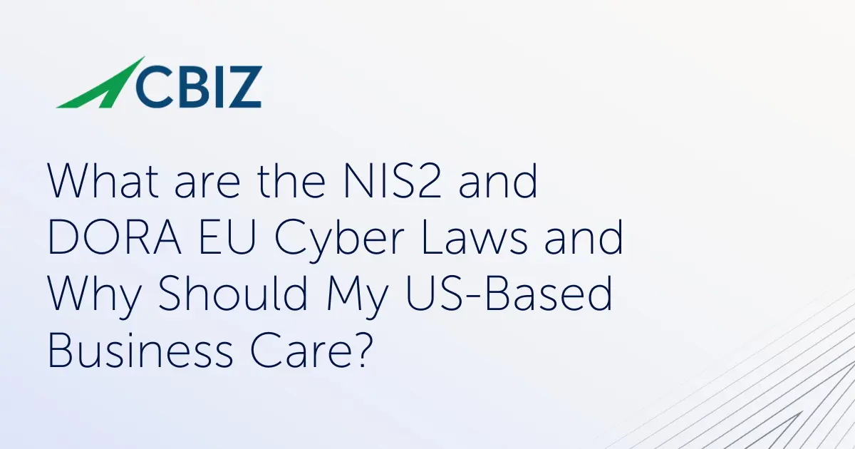To speak with a cybersecurity compliance expert about your organization’s response to NIS2 and DORA requirements, including assessing your current compliance scenario, contact CBIZ Pivot Point Security.