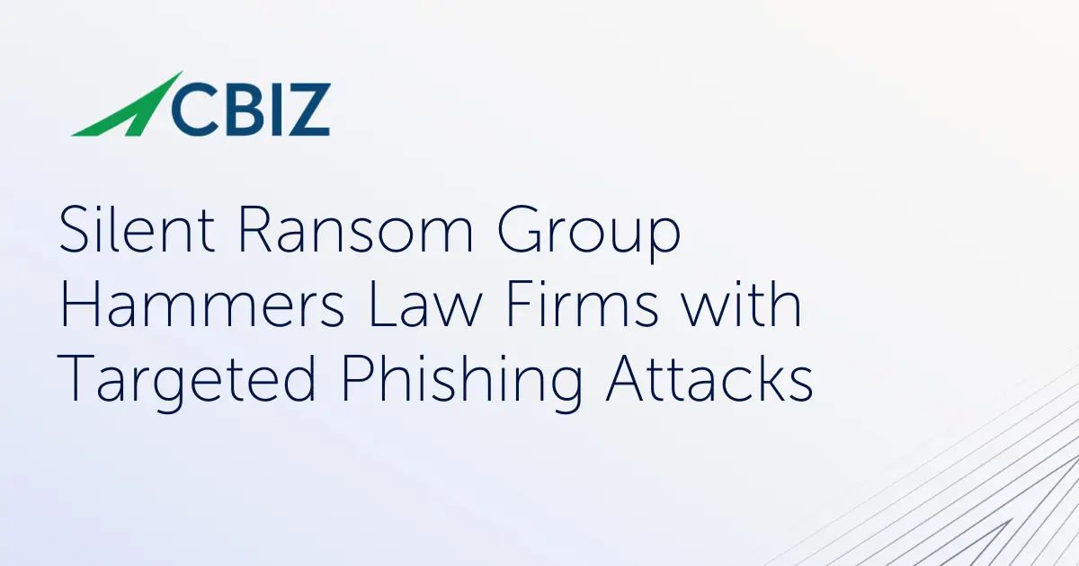 CBIZ Pivot Point Security provides services that help law firms and other clients efficiently achieve and maintain a provably secure and compliant cybersecurity posture. To schedule a complimentary discussion with a subject matter expert on how your business can better manage cyber risk and safeguard sensitive data even from targeted attacks, contact us today.