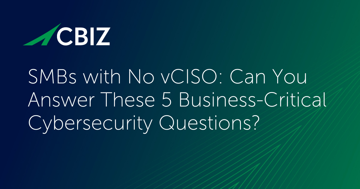 If you don’t have ready answers to these questions, or you don’t like the answers you find, contact CBIZ Pivot Point Security for a free consultation on how our vCISO/virtual security team service can cost-effectively protect your business from cybersecurity risk.